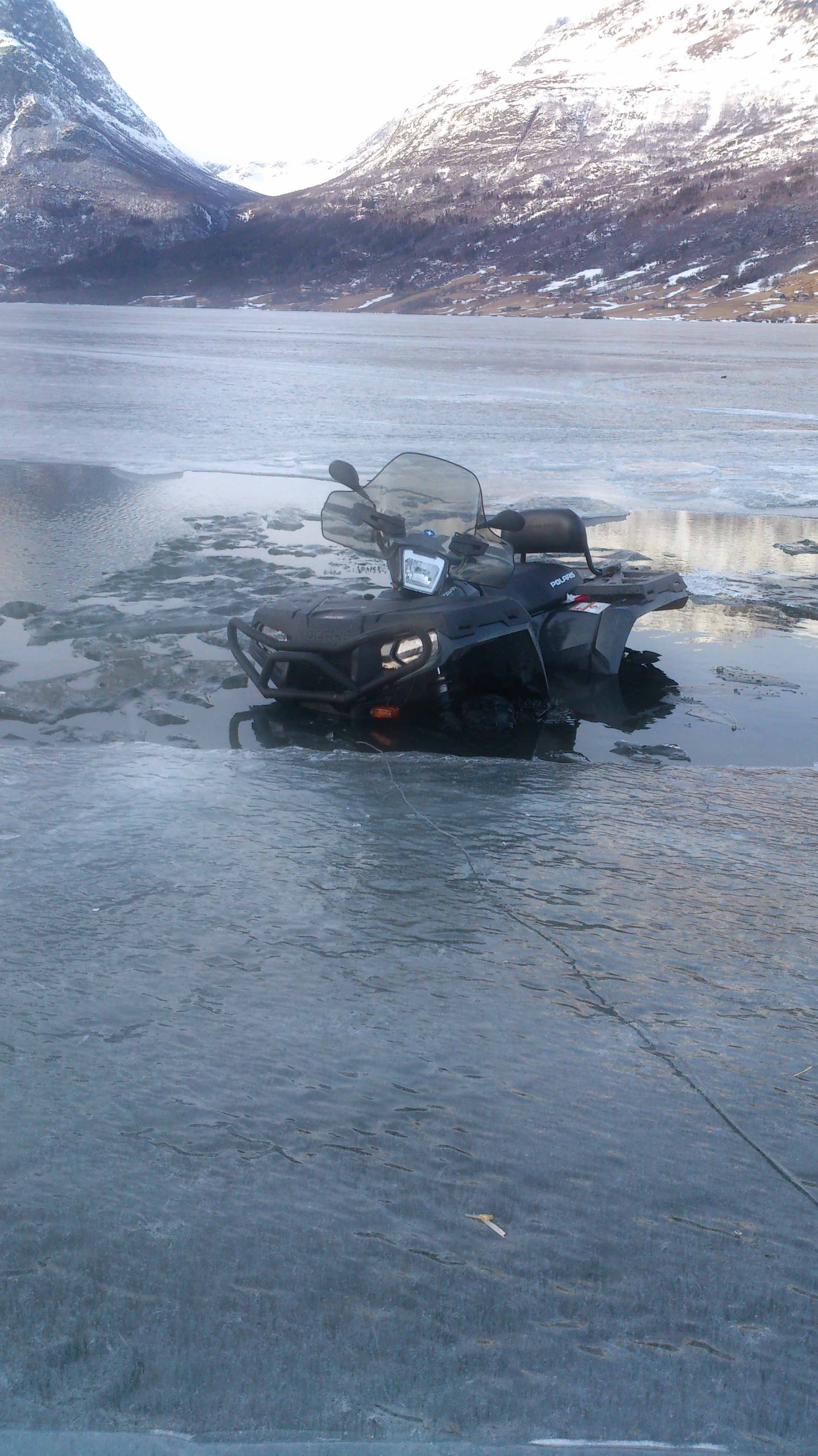 gikk igjennom isen