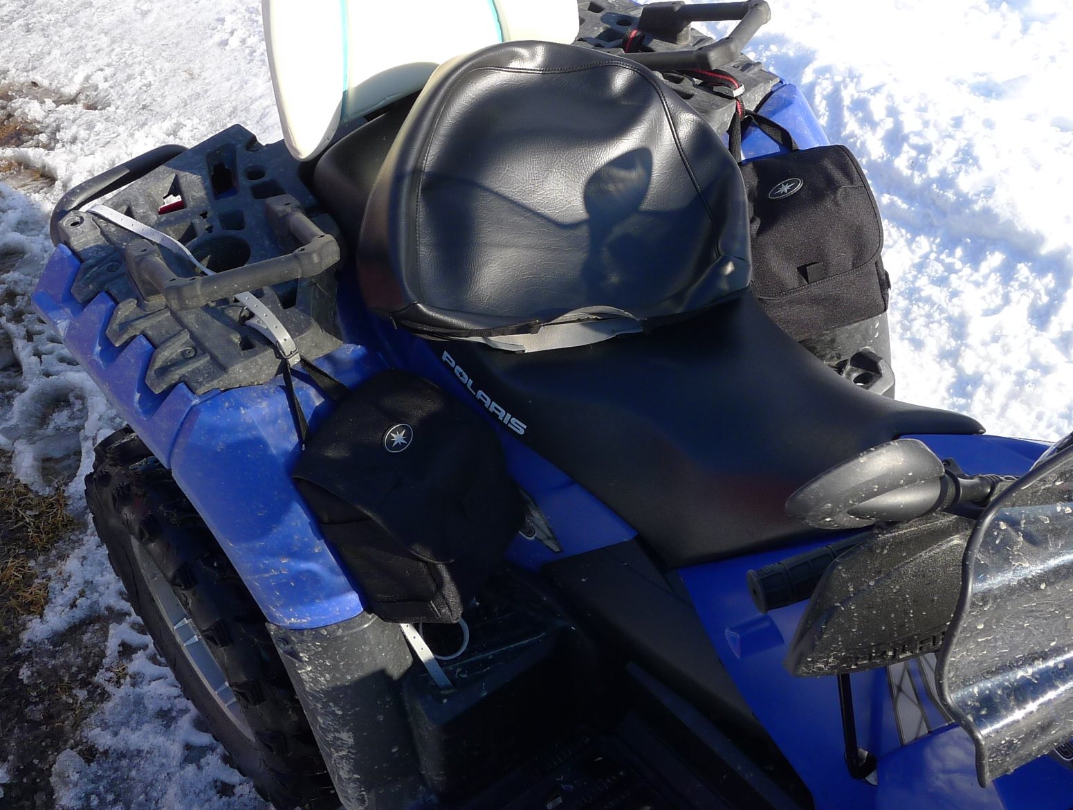 Først fikk jeg en sprekk i skjermen, og i dag når jeg skulle kjøre atv i garasjen sin så rygget jeg mot klessnoren, og den jækla jernstangen.....traff selvfølgelig ryggen på passasjersetet
