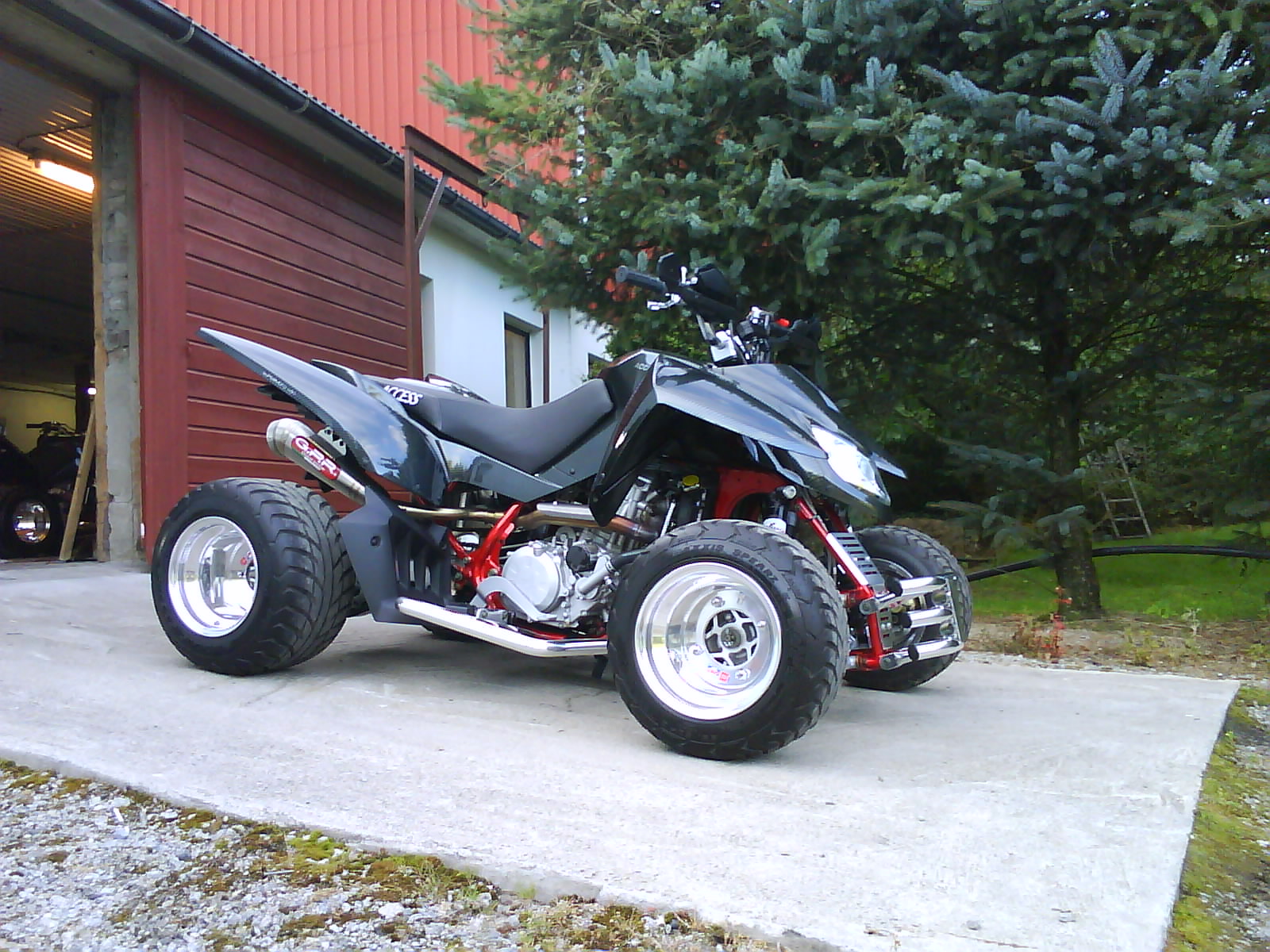 litt om atven, er gjort om til full effekt, full åpen eksos (heeftig lyd!) smeller og styrer på! større dyse 152,5, skiftet gasspjeld, åpnet opp for mer luft og har nylig montert et 15T framdrev. har også fått på custom alu felger med maxxis spearz hjul og fått avbalansert disse. har også lakkert litt reflekser bak og litt skruer rundtom for litt mer clean look.