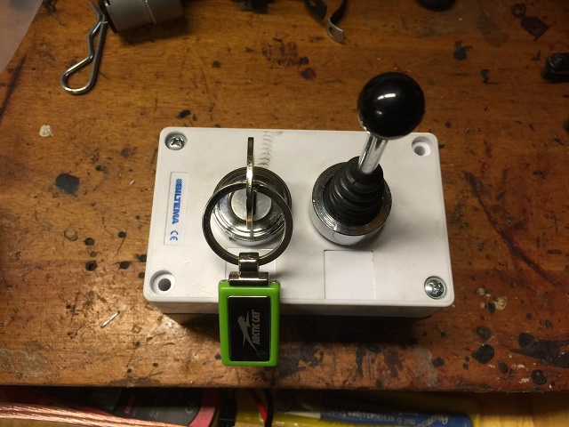 Savnet mulighet for å styre utkaster så nå er joystick (4-veis), aktuator for vinkeljustering og motor for vridning kommet i hus. Kjøper i dag el-delene så det blir litt mekking i helga