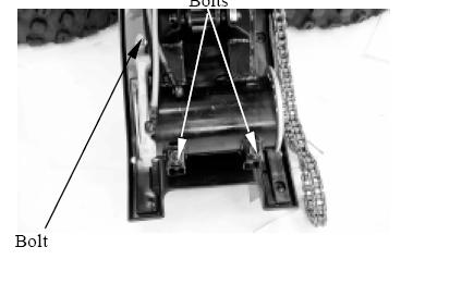 For å stramme kjede på en kxr må 1 løsne de to boltene på armen.