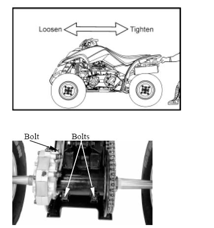 Vet ikke helt om det er sånn på din, men på min (LTR450) så må eg løsne skruene, og deretter skubbe den enten frem eller tilbake når den står i gir. Kjeden må selvsagt være påmontert, så kanskje du kan bruke den gamle?