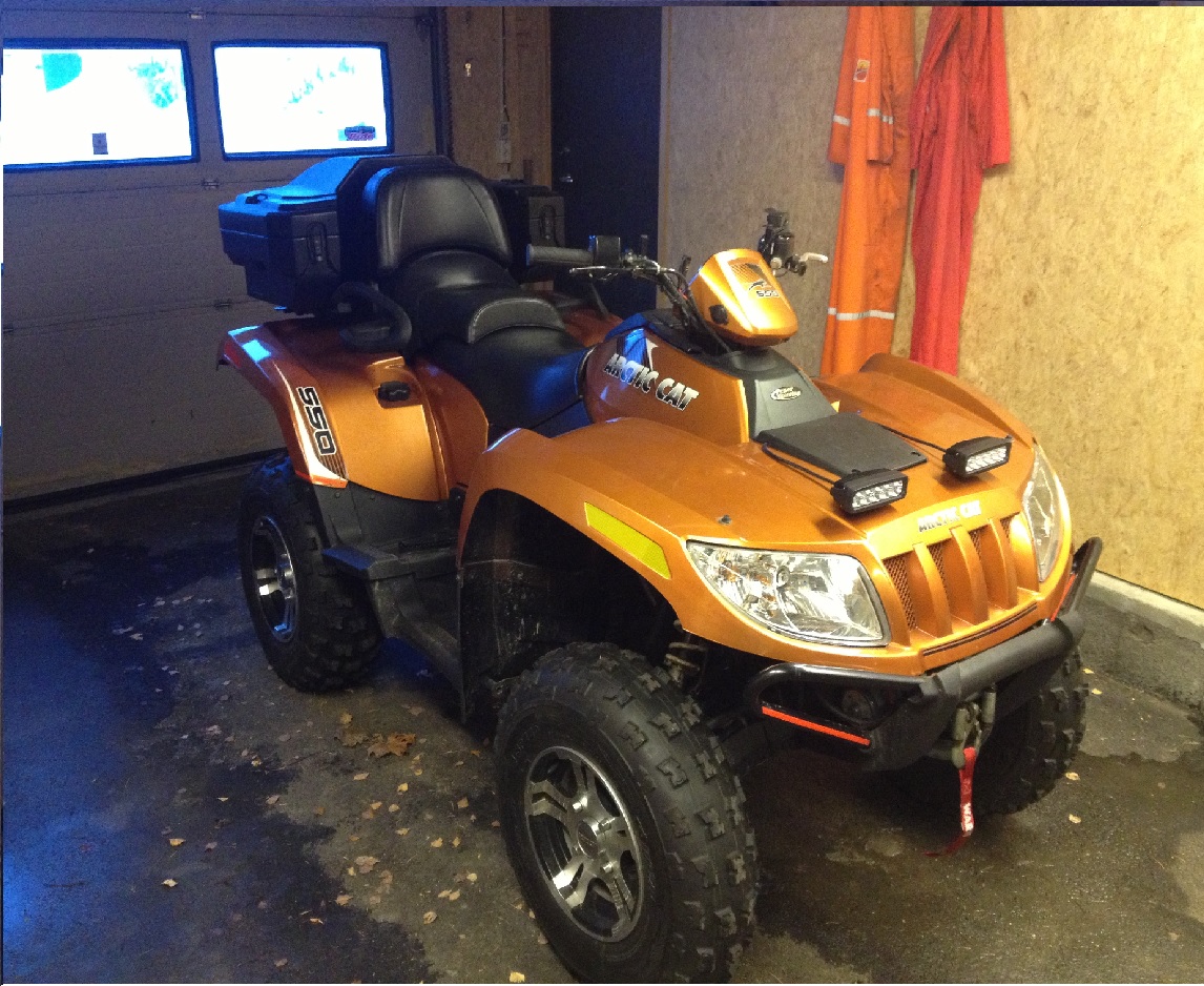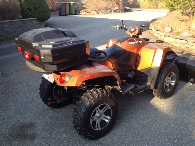 ATV 3: AC trv700efi Cruiser 2009, registrert som traktor. Ble stjålet bare 3 mnd etter at vi fikk den i hus fra Stryn. Når forsikrings oppgjøret kom var vi ikke seine om å finne en ny, det sto mellom en Polaris 550 X2 og den vi kjøpte.