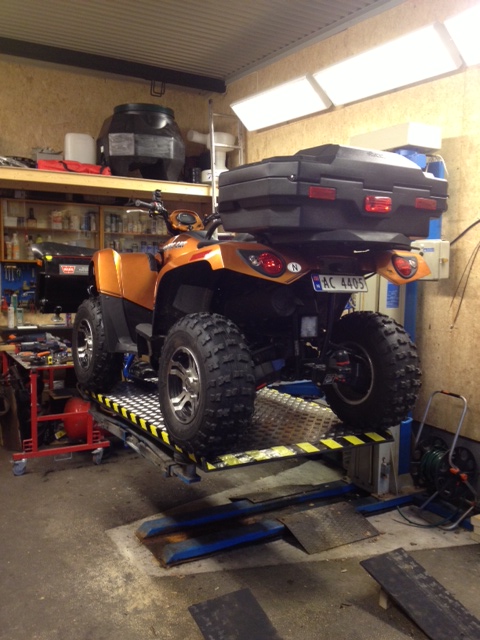 Hobbygarasjene våre er det egne filmer av på youtube. Heldig var jeg at tidligere huseier også var lastebileier og derfor lagde garasje med stor takhøyde, men over til hvorfor jeg er her og mine atv'er: