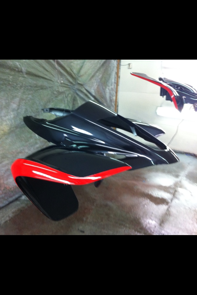 de er lakkert selv ja!base metallic er vanlig lakk,men klarlakk må blandes med mjukner slik at den ikke sprekker!må bruke syregrunding på plast er viktig